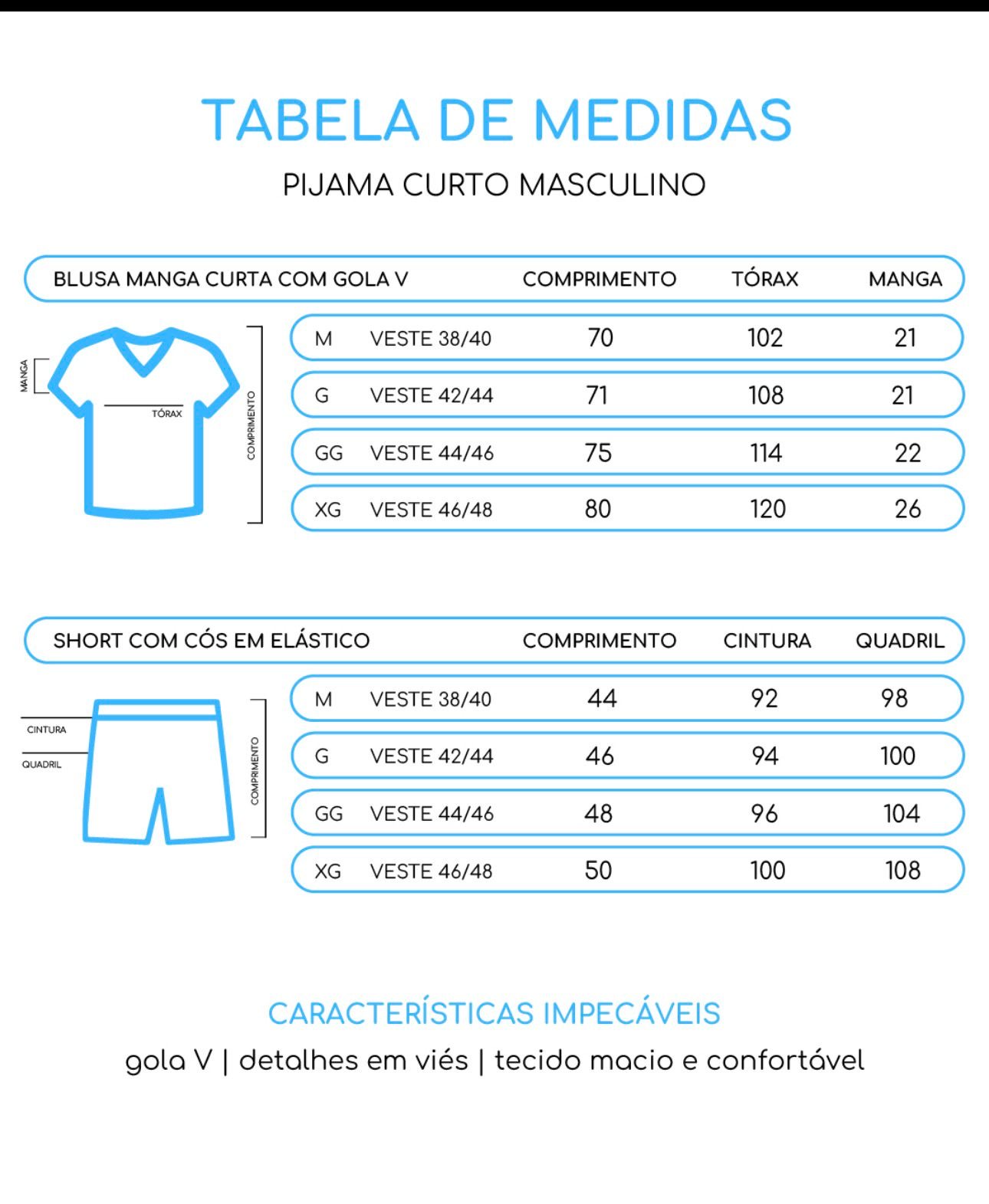 Consulte a tabela de medidas para escolher o tamanho ideal.